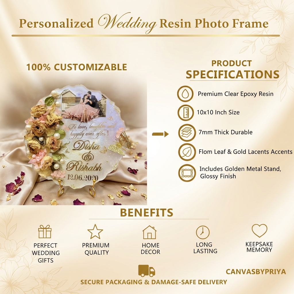 Personalized Wedding Resin Photo Frame is a beautiful way to preserve your most special moments in a timeless and elegant style. Designed especially for newly married couples and anniversary celebrations, this handcrafted resin frame turns your wedding memories into a lifelong keepsake.